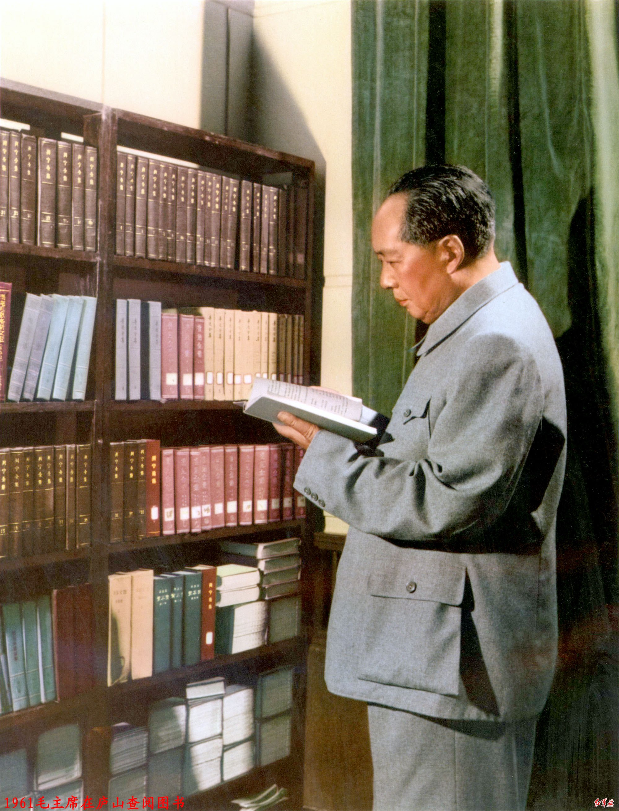 似乎想起了什么,主席从沙发上站了起来,我也跟着站起来。主席用手示意要我坐下,他自己走进旁边卧室,在床上那半边书堆中翻了翻,拿了一本浅蓝色封面小册子走出来,递给我说:“你拿去读读。”